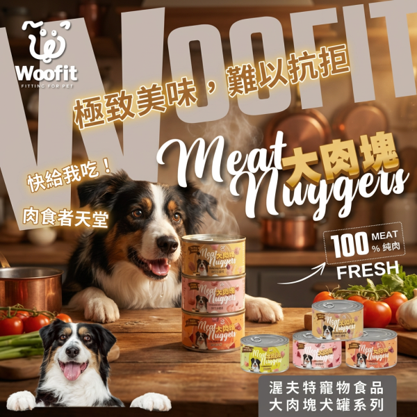 Woofit 100%純肉大肉塊犬罐|雞肉/牛肉|無膠無香料|人蔘補氣・枸杞抗氧化|狗狗主食罐