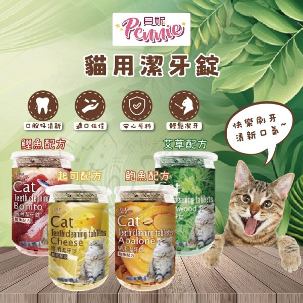 PENNIE貝妮貓用潔牙錠120g|魚肉鮑魚口味|口氣清新牙齒亮白必備!