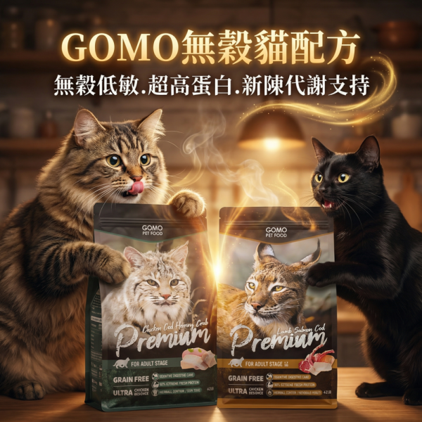 Premium GOMO 無穀貓飼料 4.2磅|原野鮮肉乾糧 成貓飼料